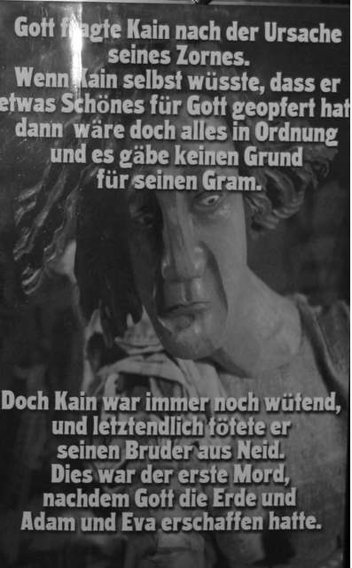 Gezeigt werden Adam & Eva, der Baum des Lebens, Kain& Abel, Noah, Giraffen, Abraham,