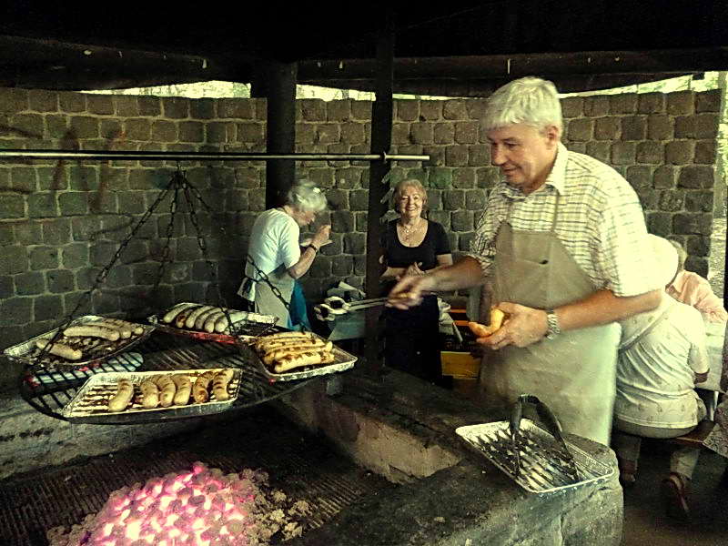 An der Grillhütte waren schon die Mitglieder des Seniorenbeirates fleißig am Werk. Nach dem sich alle begrüßt und ihren Durst gestillt hatten wurde gegessen. Es gab sehr leckeren Kartoffelsalat und Grillwürstchen. Die Wanderer hatten sehr guten Appetit mitgebracht, so dass der Kartoffelsalat diesmal nicht reichte. Es wurde aber sehr schnell Neuer besorgt und alle wurden satt. Ein besonders Lob gilt Herrn Schmitz der