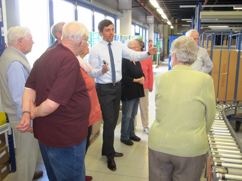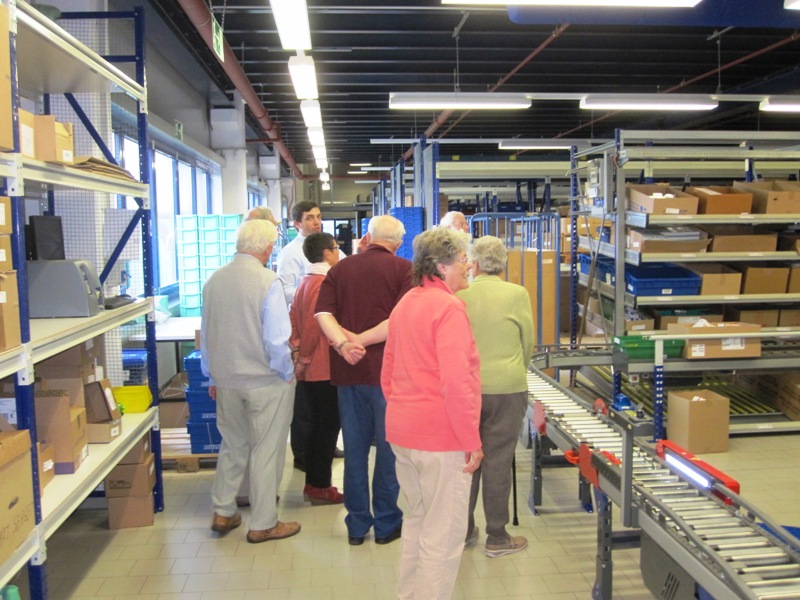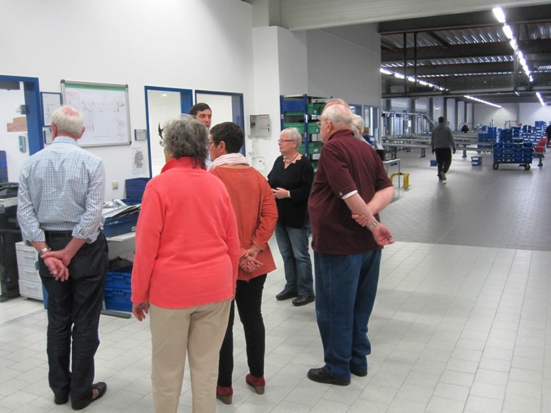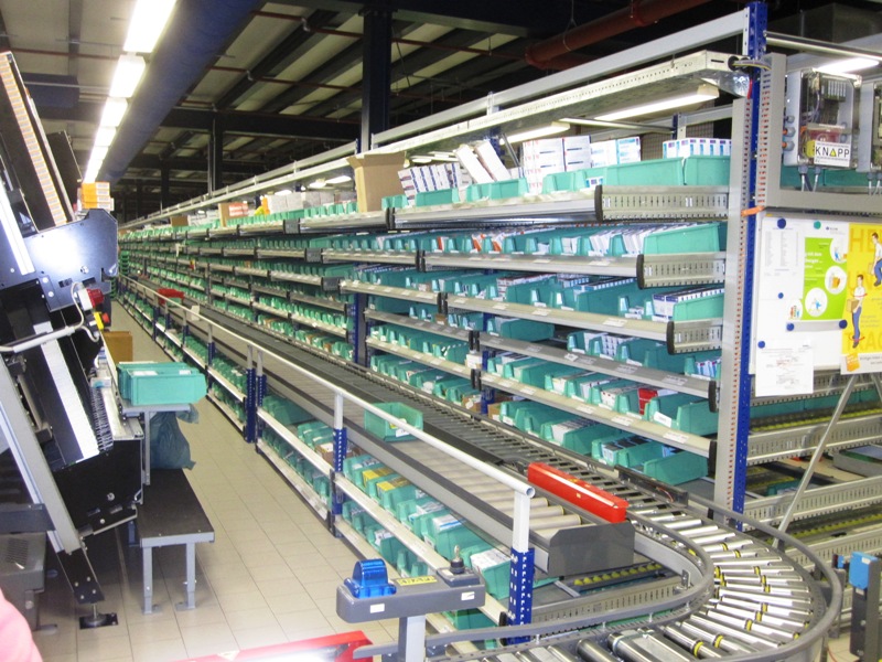 Bei der Besichtigung des Betriebes fällt auf, dass ein Großteil der Waren vollautomaltisch über die Förderweg läuft. Für die 1.200 Artikel, die die meiste Nachfrage haben, werden dies sogar vollautomatischen in die Behälter gefüllt. Es war faszinierend zu sehen, wie die Behälter auf den Förderwegen automatisch per Strichcodeabfrage ihren Weg zu den Regalen und anschließend zu den Verladestationen für die LKW´s gefunden haben.