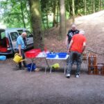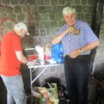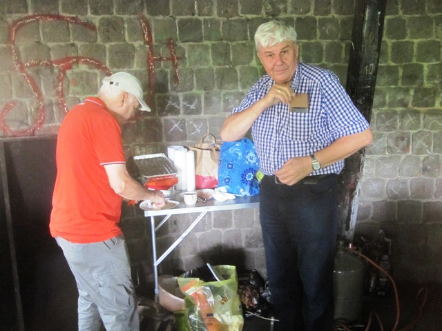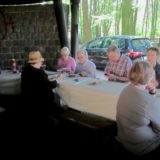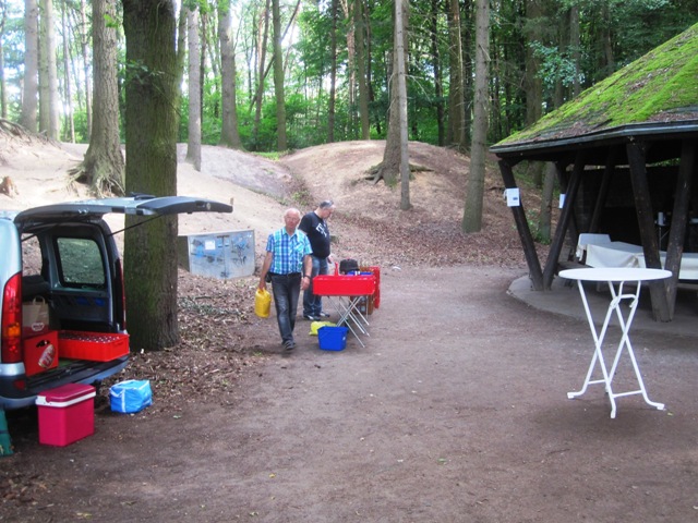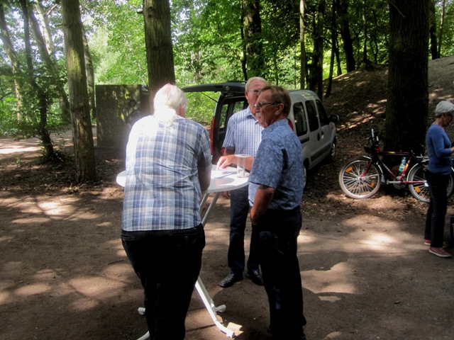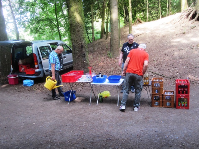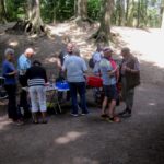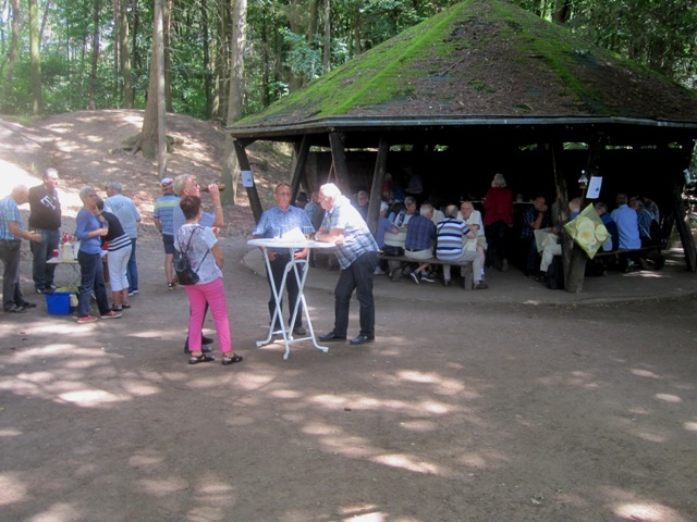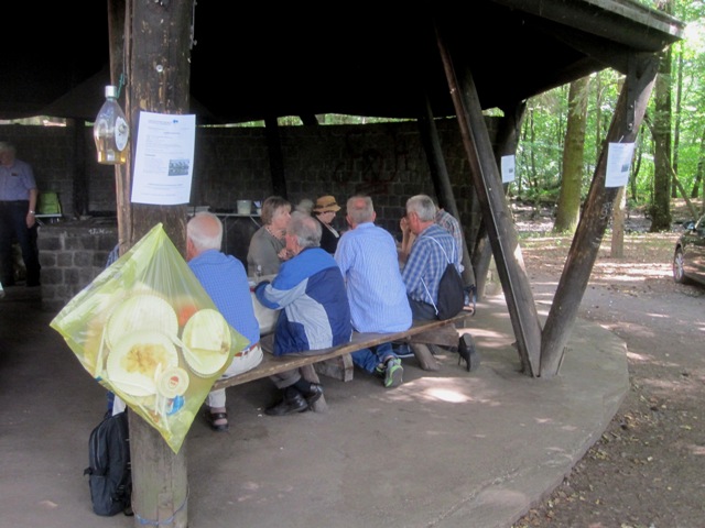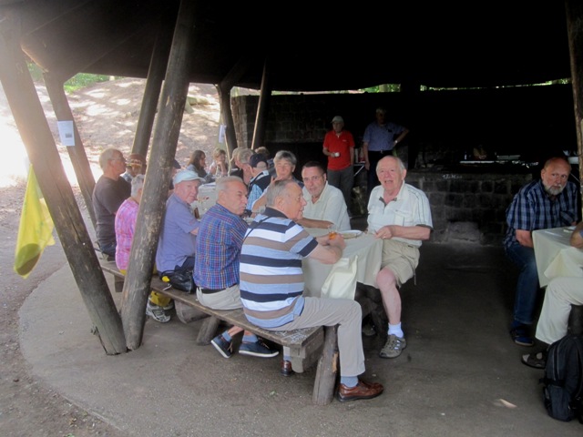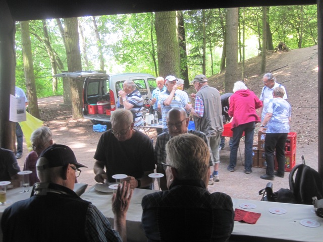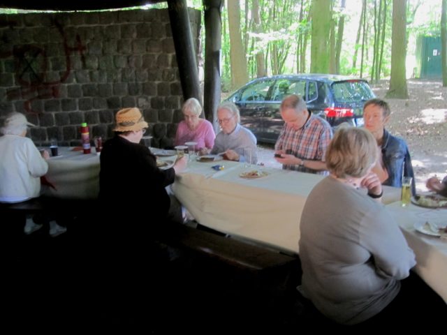 Wie üblich machten sich die Teilnehmer auf verschiede Weise auf den Weg nach Bensberg. Einige wanderten bei schönem Wetter unter der Führung von Günter Mahlberg von der KVB-Haltestelle Thielenbruch aus zur Saaler Mühle. Andere kamen per Straßenbahn oder Auto direkt zur Grillhütte nach Bensberg. Die Grillkohle war schnell angezündet und die ersten Würstchen und Fleischstücke brutzelten auf dem Grillrost vor sich hin. Auch der Kartoffel- und der Krautsalat sowie die übrigen Beilagen standen bereit und fanden regen Zuspruch bei den Gästen. Für Getränke wie Bier, Wasser, Limo und Kaffee war ausreichend gesorgt. Da das Wetter mitspielte brauchten wir diesmal keinen Pavillon für die Getränke.