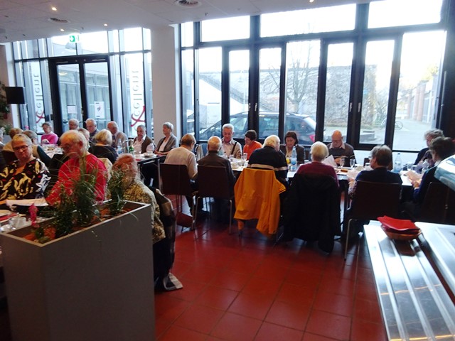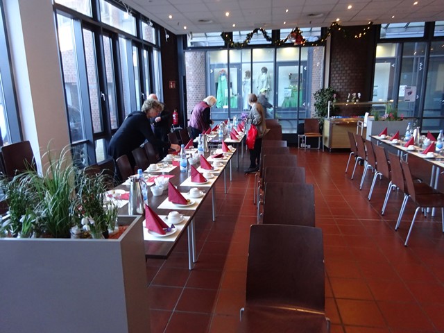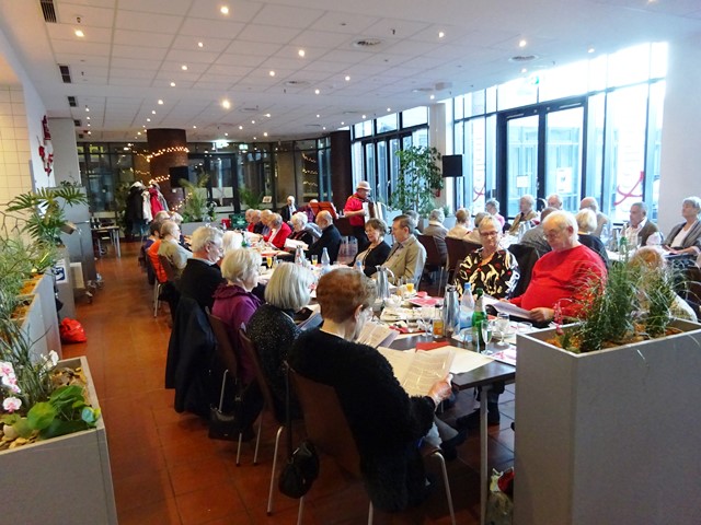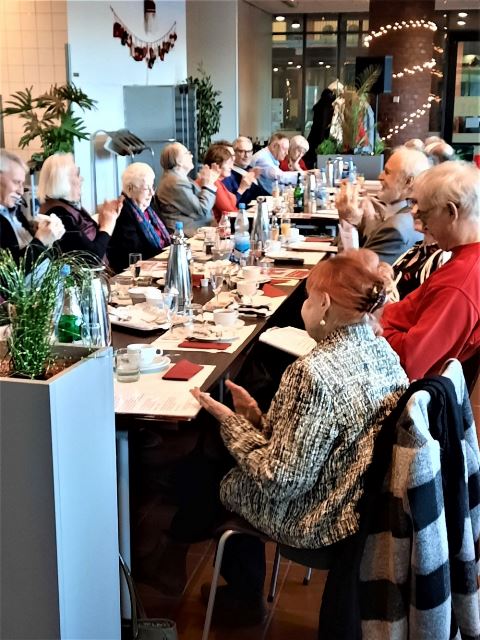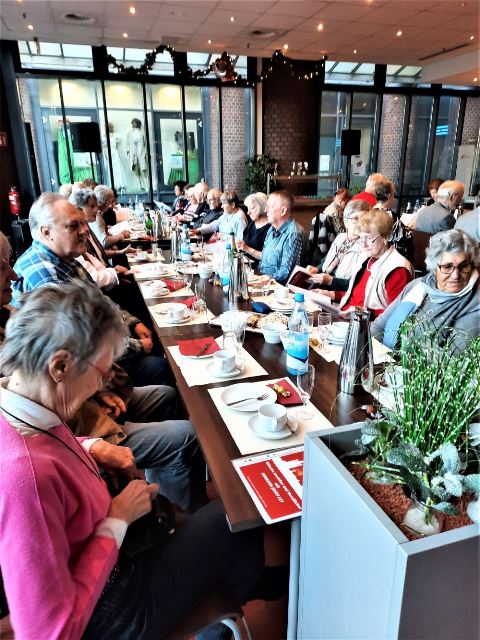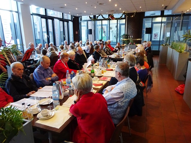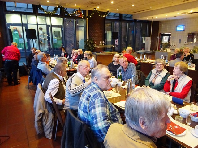 Die Veranstaltung begann um 14:00 Uhr mit der Begrüßung durch Hermann-Josef Stephan. Er gedachte den in diesem Jahr verstorbenen Mitarbeitern des SBR Helmut Walterscheid und Siegfried Klädtke mit einer Schweigeminute. Anschließend gab er einen kurzen Rückblick über unsere Aktivitäten in diesem Jahr und einen Ausblick über das, was wir im nächsten Jahr bereits planen. Danach servierten die Bediensteten des Restaurants Kaffee, Kuchen und Stollen. Nun wurde viel erzählt und die Zeit verging wie im Fluge. Viele hatten sich darauf gefreut, hier alte Kolleginnen und Kollegen zu treffen und mit ihnen „schwaade zu künne“.