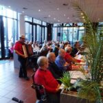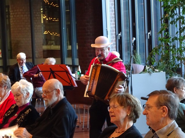 Das kleine Programm eröffneten „Dä Quetschenbüggel“ Hermann-Josef Ley, seines Zeichens Leiter des Chors der “Akademie für kölsche Sprooch”. Er sang kölsche Leeder und trug einige “Rühmscher” und Verzällcher in kölscher Sproch vor. Seine beiden Auftritte dauerte jeweils ca. 30 Minuten.